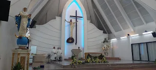 | Altar of the Diocesan Shrine and Parish of St. Columban - New Asinan, Olongapo City, Zambales. Photo taken on November 2023. Photo from St. Columban Parish FB Page) |